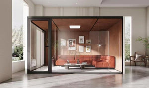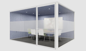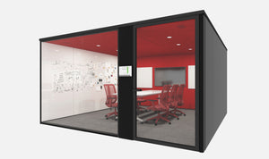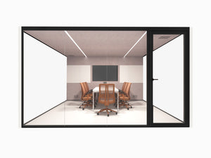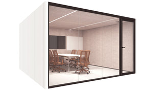 STUDIO MEETING ROOM is a standalone, self-contained room within a room system that seamlessly integrates with our Pod product family. Ten person office room, ideal for large meetings, workshops and video conferences, this versatile space can also transform into a single or double office. Despite its size, the Cube feels open and inviting, thanks to its full glass door at the front and standard full glass panels on the sides. Various configurations are available to suit your specific needs.